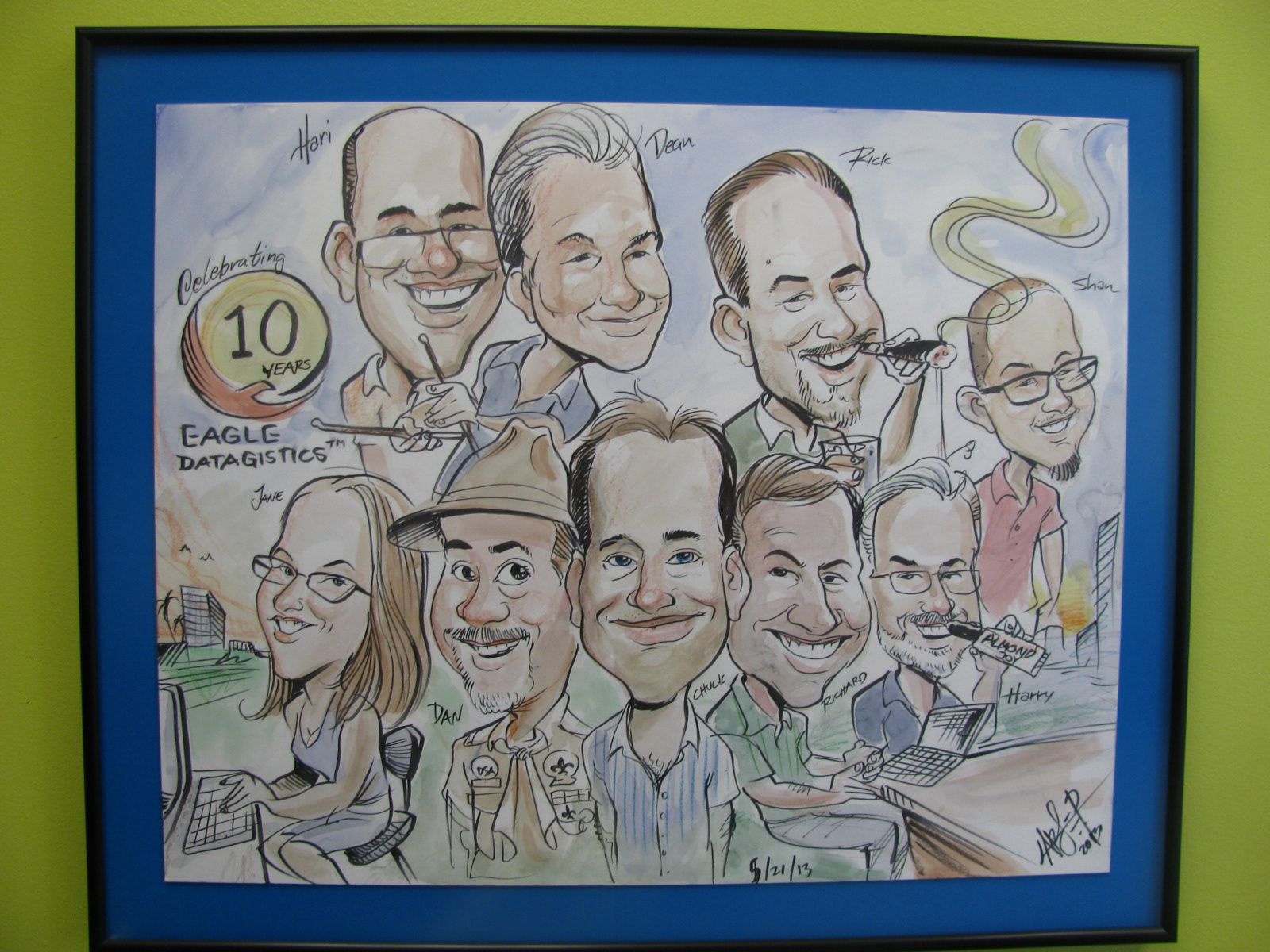 This was an a big leap project for me to take on, because this time I relieved a budget to paint this #painting with more realistic approach to this #Illustration. I was originally approached a couple of years ago to go into the office and draw about 12 of the company employees. I explained to him that I felt rushed and would rather try to have more time in my studio and paint 14 in a layout of the office and over looking he gulf and the St Pete Pier.