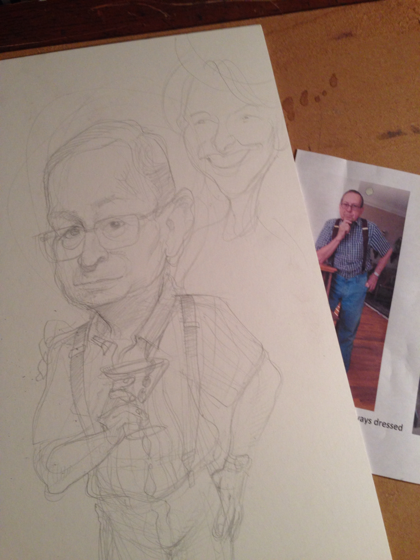 Caricature studio work prior to a live gig